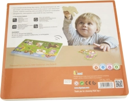 Po vložení každého dílku se ozve autentický zvuk zvířete. Děti si tak lépe propojí obraz, tvar a zvuk a učení je baví.