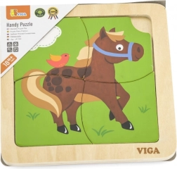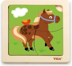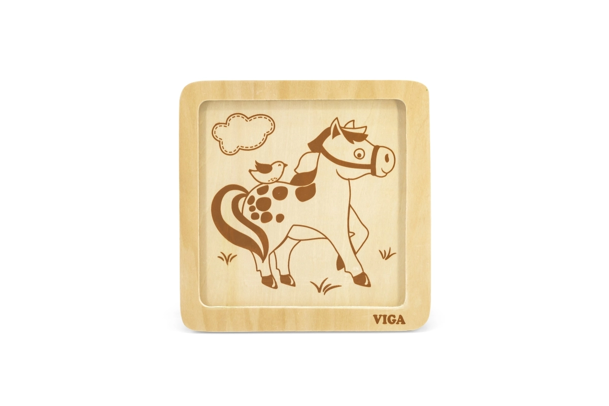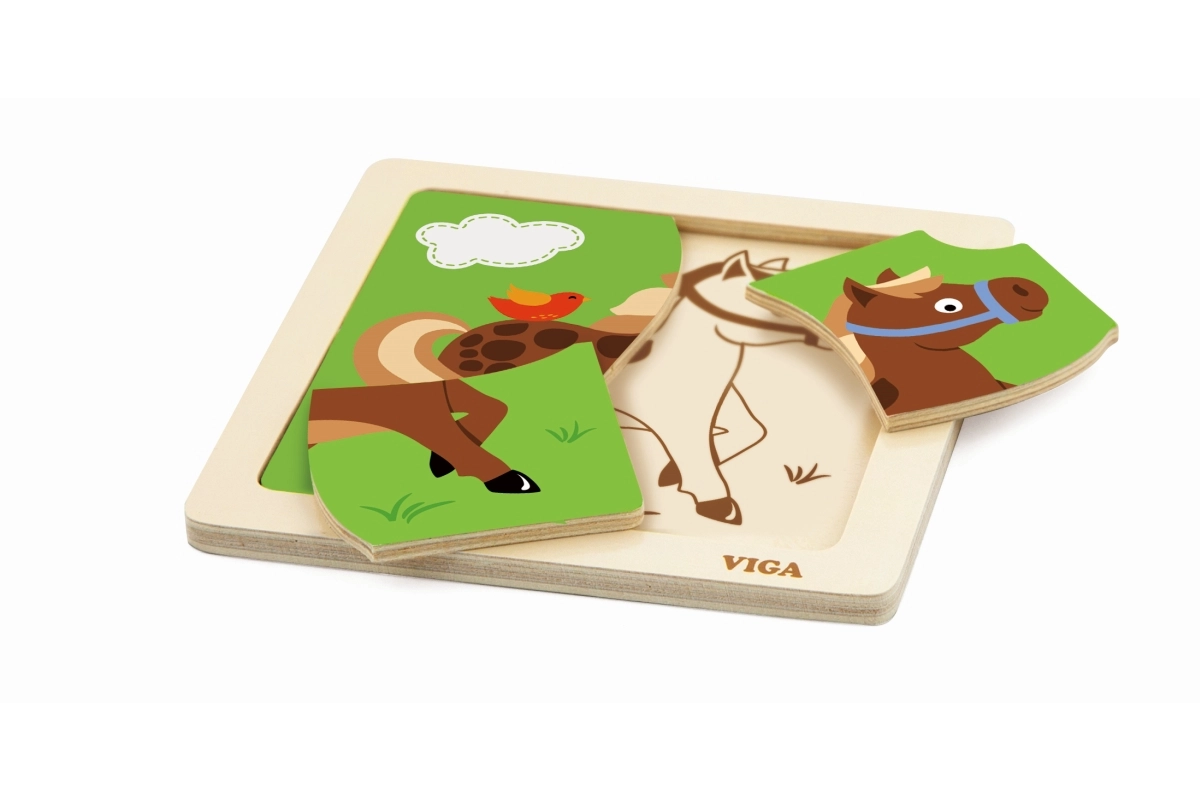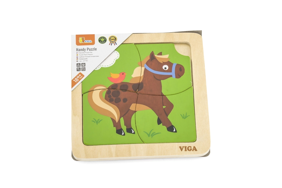 Roztomilé dřevěné puzzle s motivem koně potěší nejmenší děti od 18 měsíců. Díky pouze 4 velkým dílkům, pevné dřevěné základně a jasným barvám se děti učí skládat obrázek snadno a s radostí, přičemž si rozvíjejí jemnou motoriku, koordinaci oko–ruka a tvarové vnímání.
