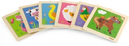 Toto kompaktní dřevěné puzzle s veselým koníkem je ideální první skládačka pro batolata. Velké a hladké dílky se pohodlně drží v malých ručičkách a vkládají se do stabilního dřevěného rámečku, který usnadňuje správné umístění.