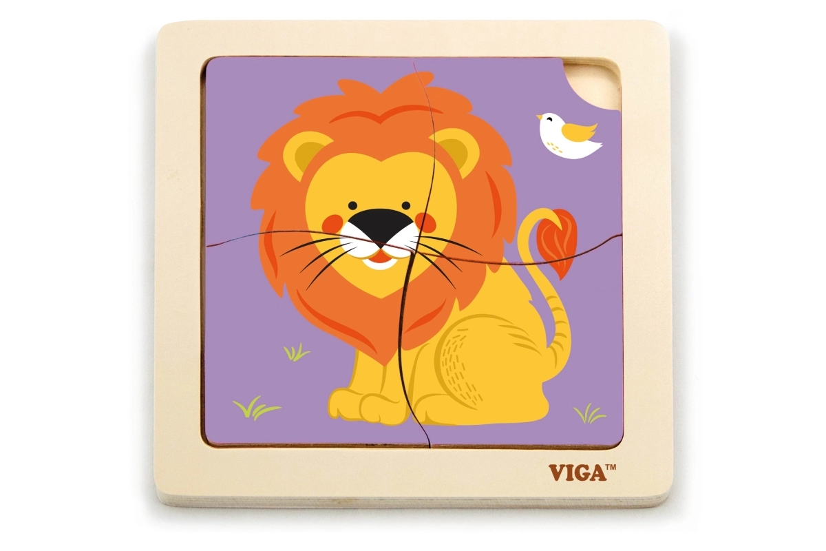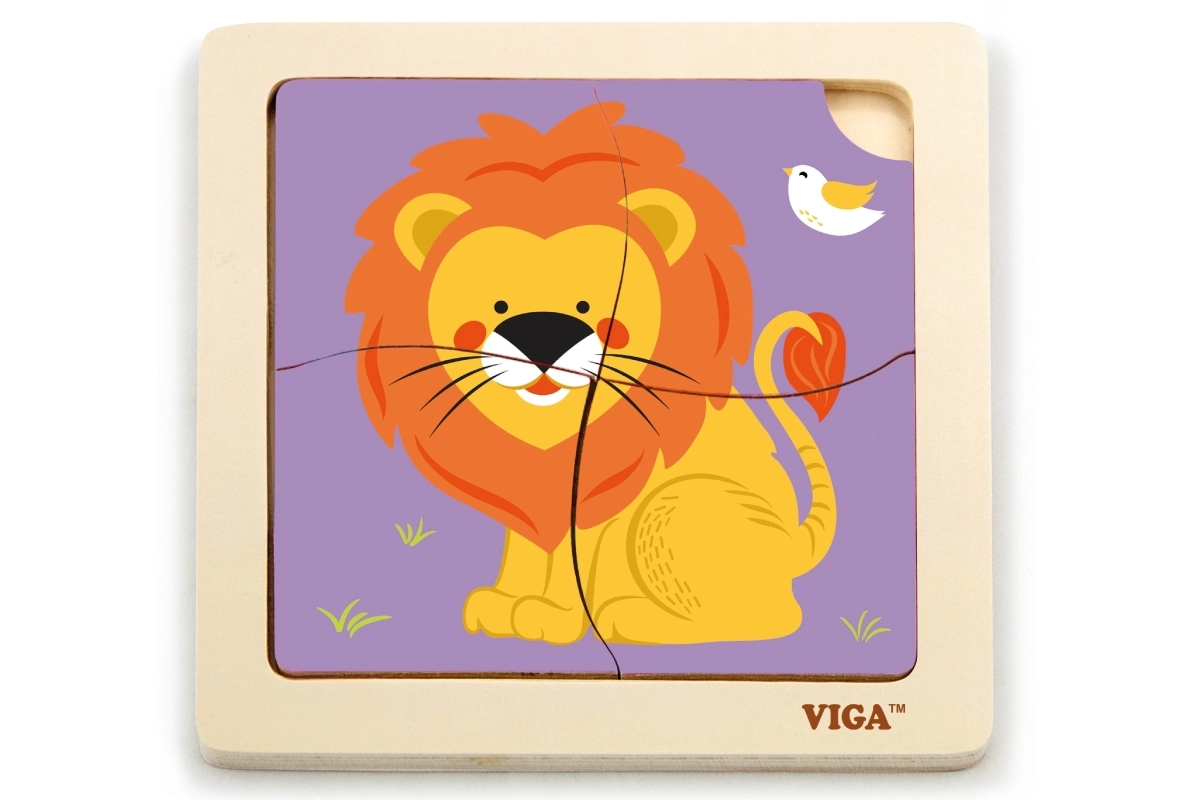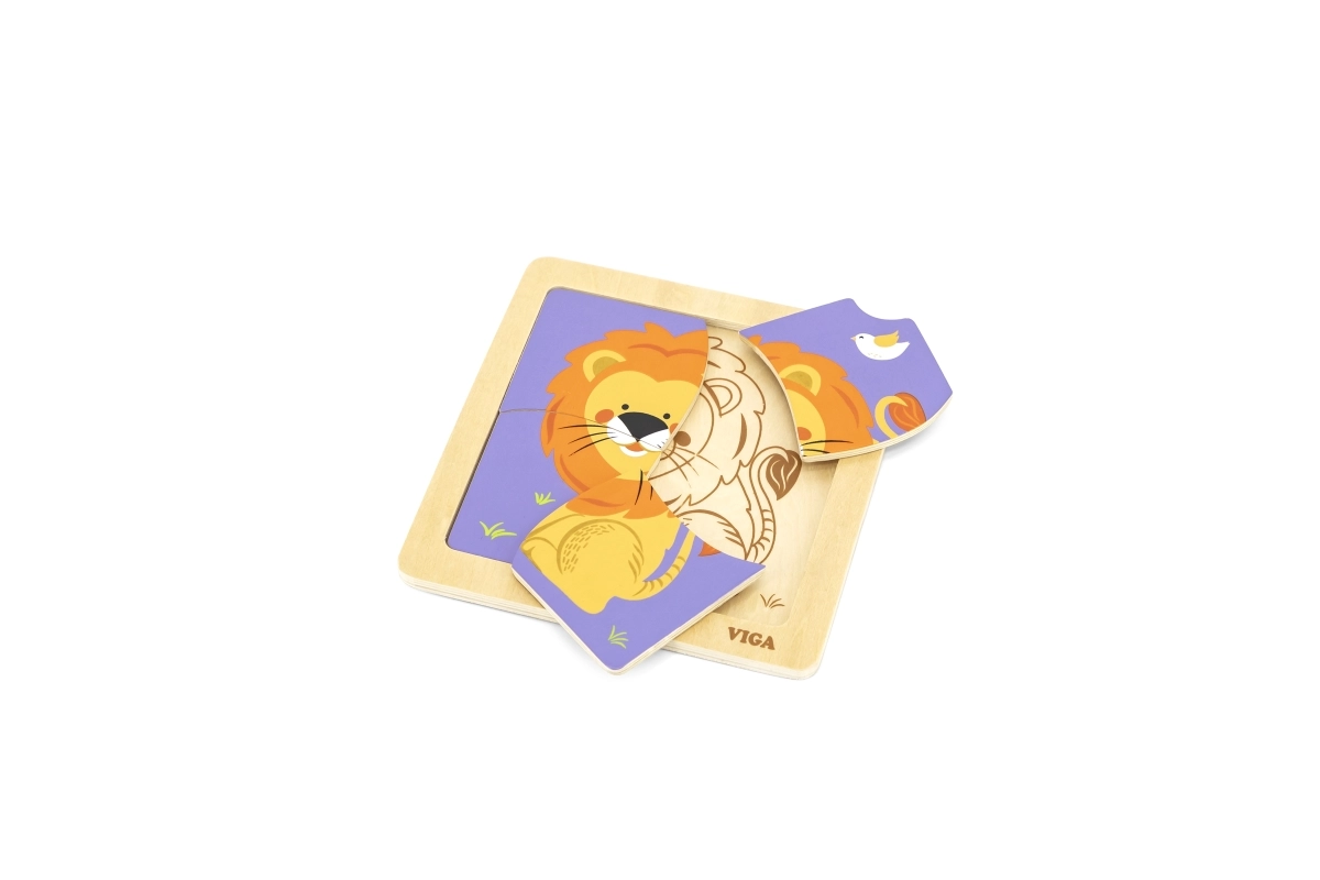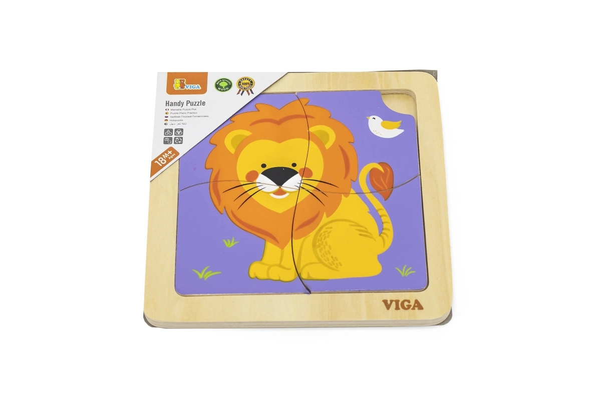 Toto kvalitní dřevěné puzzle s veselým obrázkem lva je navrženo pro malé ručičky. Díky čtyřem robustním dílkům s hladkými hranami se děti snadno učí přiřazovat tvary a procvičují trpělivost i soustředění. Praktická dřevěná základna drží dílky na místě a usnadňuje skládání.