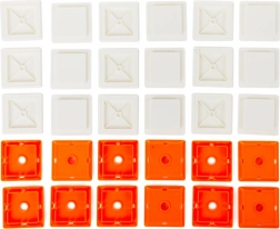 28 čtverců, 12 rovnostranných trojúhelníků, 2 šestiúhelníky, 2 tvary oblouků, 2 třístranné tvary, 4 obdélníky