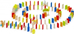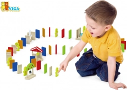 Dřevěné domino Viga Farma přináší dětem nekonečné možnosti stavění a objevování. Díky různým tvarům – od klasických obdélníkových dílků až po tematické prvky jako kuřátka či farmářské doplňky – snadno vytváříte originální dráhy, mostky i zábavné překážky. Kvalitní dřevo a bezpečné barvy zajišťují dlouhou životnost a bezpečné hraní.