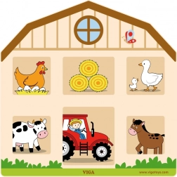 Tato kvalitní dřevěná hra ve tvaru domečku nabízí několik dvířek s různými typy zámků – háčky, petlice, řetízky či posuvné západky. Při každém otevření na děti čeká překvapení v podobě ilustrovaných zvířátek, což podporuje zvídavost, soustředění a koordinaci oko–ruka.