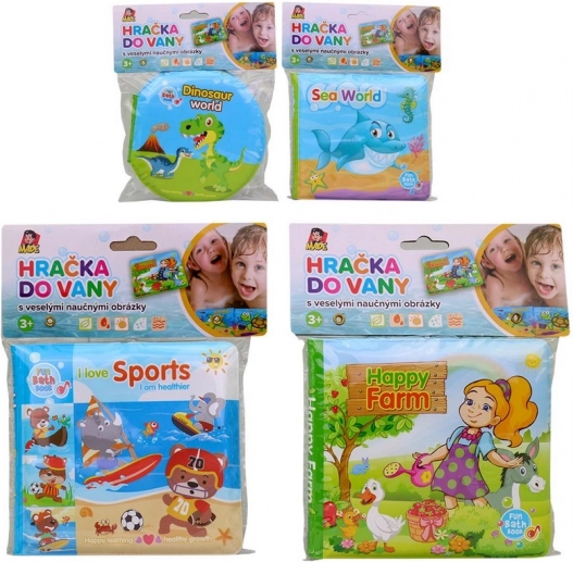 Měkká knížka do vody s motivy dopravních prostředků. Zábava do vany pro děti od 3 let, bezpečný plast, snadná údržba. Rozměry 3 × 14 × 12 cm.