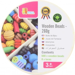 Dřevěné korálky Viga nabízejí nekonečné možnosti pro tvořivost a zábavu. Děti mohou pomocí 8 přiložených šňůrek navlékat celkem 600 korálků, ze kterých lze vytvořit nádherné náramky a náhrdelníky. Tato hračka pomáhá rozvíjet dětskou kreativitu a jemnou motoriku.