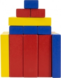 Pevné dřevěné kostky v sytých barvách odolají častému hraní a dobře padnou do ruky – pro pohodlné a příjemné stavění i vyjímání.