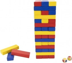 Dřevěná věž Jenga přináší jednoduchá pravidla a velkou porci zábavy. Postavte stabilní věž, hoďte kostkami a vytáhněte z věže kostku barvy, která padla – aniž by se zřítila. Barevné bloky lákají ke hře a přirozeně rozvíjejí zručnost, soustředění i trpělivost.