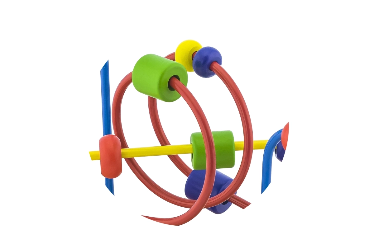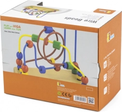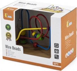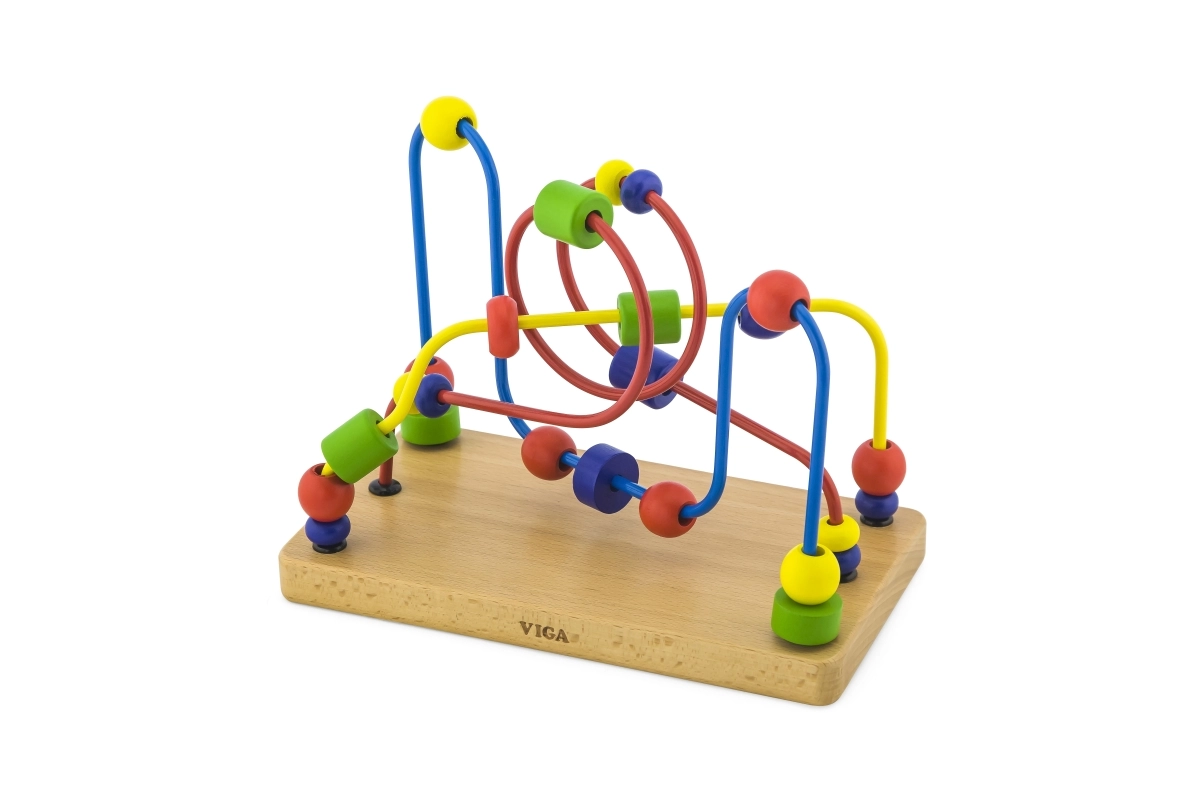 Barevné korálky na křivolakých drahách motivují děti k posouvání a třídění, čímž rozvíjejí úchop, koordinaci oko–ruka a trpělivost.