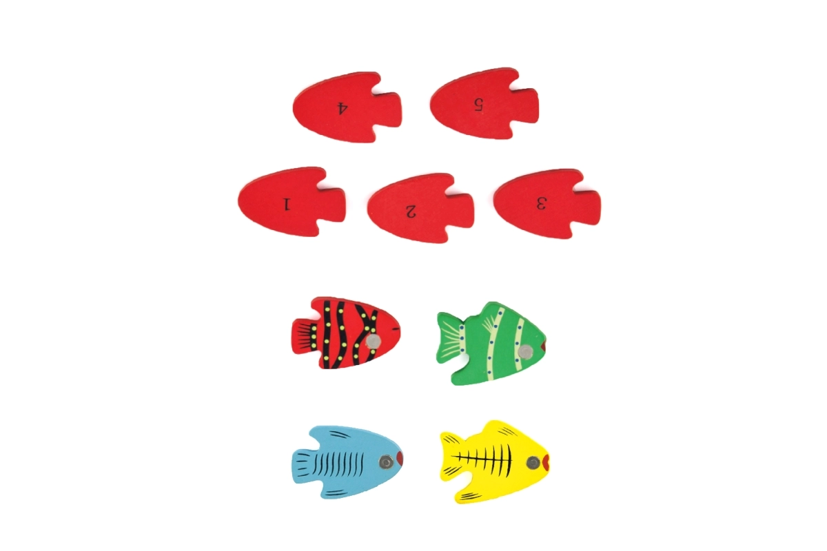 Součástí je 20 rybiček s čísly – ideální pro první seznamování s čísly, třídění podle barev a jednoduché počítání.