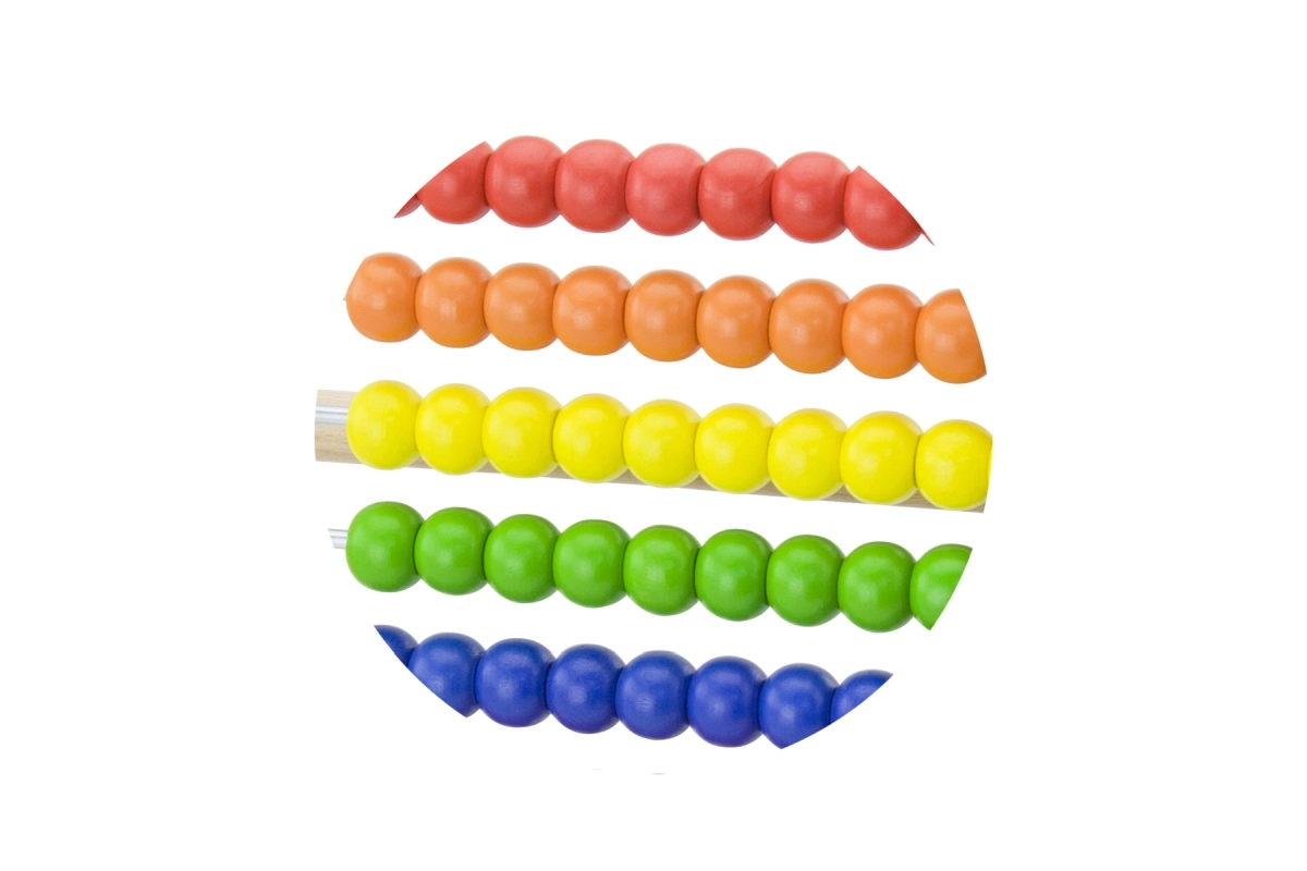 Deset řad výrazně barevných korálků podporuje vizuální vnímání, třídění a první početní úlohy.
