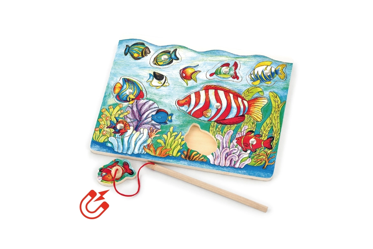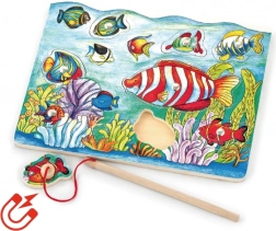 Tato dřevěná rybářská hra přináší dětem radost z lovení barevných rybiček a současně rozvíjí jejich dovednosti. Dílky se snadno přichytávají na magnetický prut, což zvyšuje úspěch a motivaci dětí. Ideální pro domácí hraní i jako dárek.