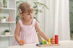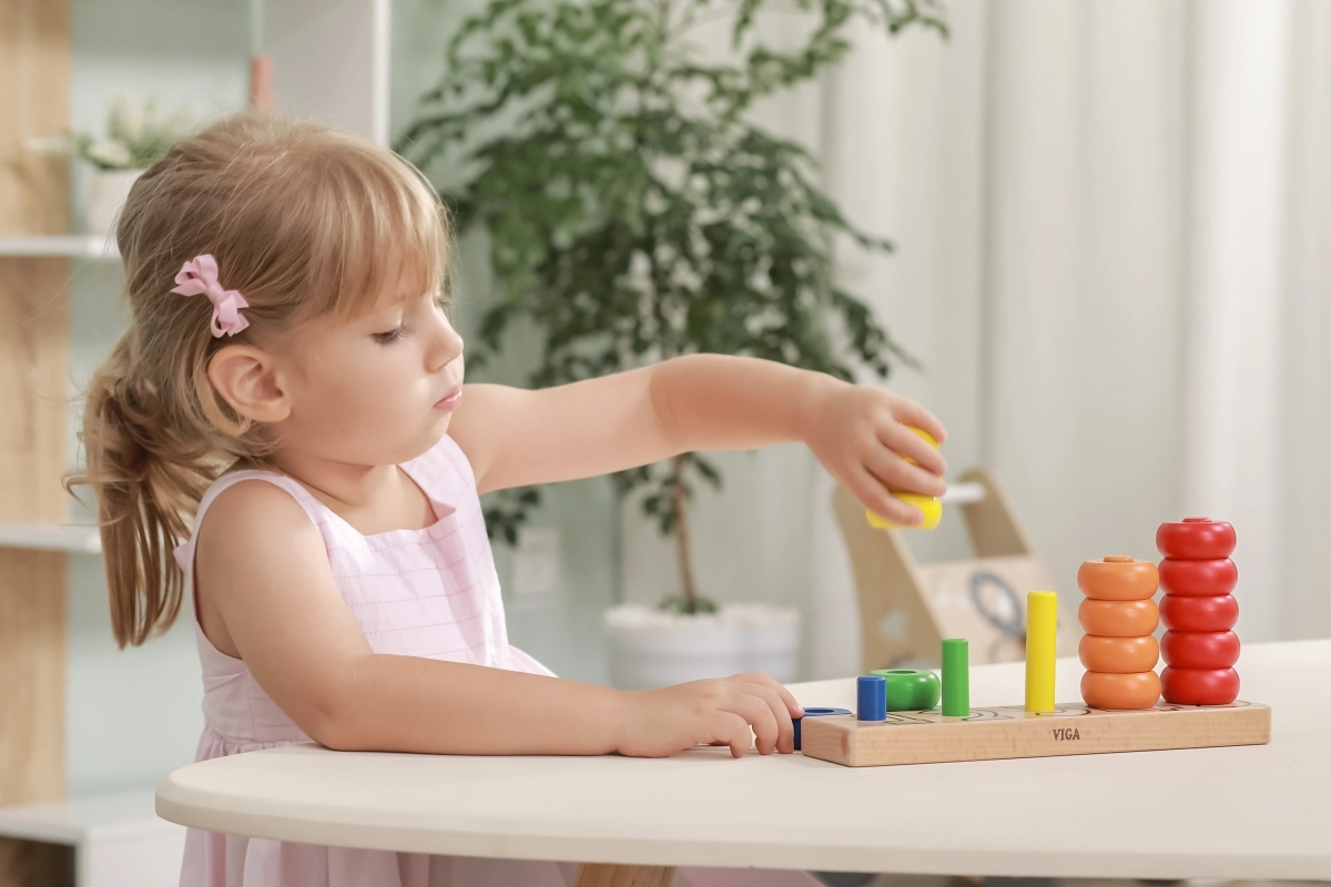 Navlékání kroužků podporuje přesnost pohybů, trpělivost a soustředění – ideální pro předškoláky.