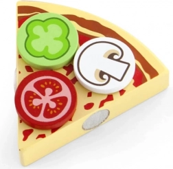 Pizza je rozdělena na dílky a doplněna špachtlí/nožíkem, takže děti mohou krájet a servírovat jako v opravdové pizzerii.