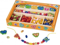 Tato bohatá sada dřevěných korálků nabízí pestrou paletu barev, tvarů a velikostí, díky nimž si děti snadno vytvoří vlastní náramky či náhrdelníky. Přehledné uložení v pevné dřevěné krabičce usnadňuje organizaci a opakované hraní.