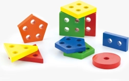 Tato pevná dřevěná vkládačka kombinuje třídění a navlékání tvarů na kolíky. Děti se učí rozlišovat barvy a geometrické tvary, procvičují koordinaci oko–ruka a zlepšují zručnost při manipulaci s dílky. Dřevo je hladce broušené a barvy jsou výrazné a atraktivní.