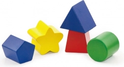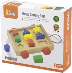 Vozík obsahuje různé geometrické tvary, které umožňují dětem zábavně se učit rozpoznávat různé tvary.