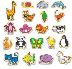 Dřevěné magnety Viga Zvířátka přinášejí barevnou radost do dětského světa. Tato sada o 20 unikátních kusech je ideální pro rozvoj představivosti a kreativity, nabízející nejen zábavu, ale také vzdělání.