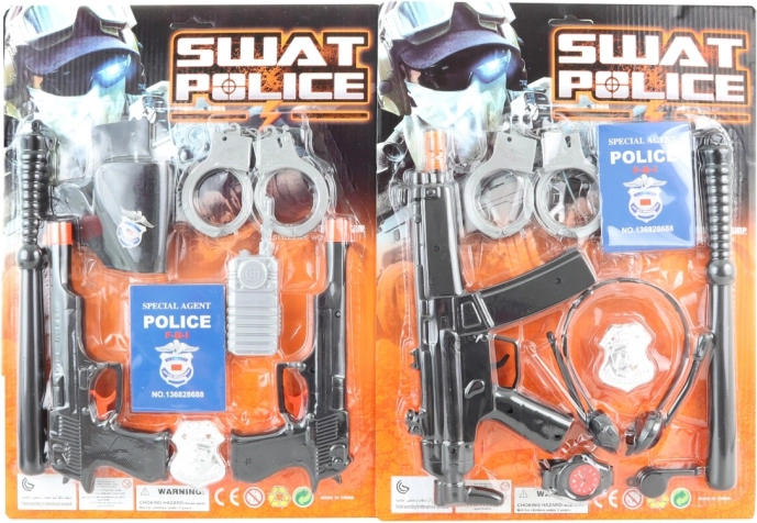 - Pouta, průkaz, odznak, obušek, samopal, sluchátka, hodinky, píšťalka / 2 pistole, pouzdro, vysílačka