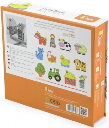 Bloky představují různé farmářské tvary jako zvířata, traktor, stodola a další, podněcující kreativní hru a vyprávění příběhů.