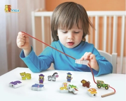 VIGA Dřevěné Provlékací Farmářské Bloky jsou navrženy tak, aby zaujaly každé dítě. Tento set obsahuje 12 barevných bloků s farmářskými motivy, které vaše dítě může províkat společně pomocí přiloženého provázku. K dispozici jsou různé tvary, jako jsou kráva, kachna, kocour, slepice, pes, kůň, ovce, farmář a jeho manželka, traktor, stodola a jabloň.