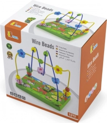 Pohybování korálků po zakřivených vodičích posiluje úchop, koordinaci oko–ruka a soustředění už od 18 měsíců.
