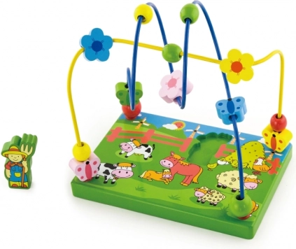 Objevte barevný dřevěný korálkový labyrint s farmářskou tématikou, který děti nadchne pohybem korálků po kovových drátcích i hrou s magnetickou figurkou. Stabilní dřevěná základna s ilustracemi z farmy podporuje představivost a zároveň učí děti soustředit se a koordinovat pohyby.