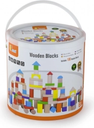 Objevte nadčasovou zábavu s dřevěnými kostkami, které dětem umožní stavět věže, mosty i vlastní městečko. Sada obsahuje 100 dílků v pestrých barvách a tvarech, jejichž velikost se pohybuje od 2,5 do 7,5 cm. Praktický kyblík s uchem usnadňuje ukládání i přenášení, takže budou kostky vždy po ruce.