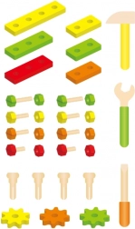 Všechny komponenty jsou přizpůsobené dětským ručkám a vyrobené z odolného dřeva. Díky bohaté sadě šroubů, matic a destiček vznikají nekonečné možnosti kombinací, které rozvíjejí fantazii i trpělivost. Sada je skvělá pro samostatnou hru i společné tvoření s rodiči.