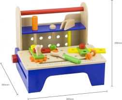 Objevte kreativní svět stavění s touto kvalitní dřevěnou sadou nářadí pro děti od 3 let. V praktické přepravce, která se snadno promění v ponk, najdete vše potřebné pro malé kutily – šroubovák, kladívko, klíč, šrouby, matice i destičky. Hra rozvíjí jemnou motoriku, logické myšlení a kreativitu a přináší hodiny zábavy bez obrazovek.