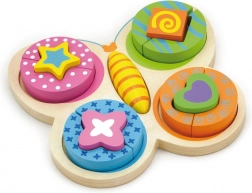 Rozkošné dřevěné puzzle ve tvaru motýlka přináší dětem od 2 let hodiny zábavy i učení. Díky jasným barvám, velkým bezpečným dílkům a vyfrézovaným okrajům díly skvěle drží na místě. Hračka podporuje jemnou motoriku, koordinaci oko–ruka a tvořivost.