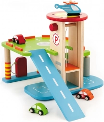 Tato kvalitní dřevěná garáž nabízí více úrovní parkování, přistávací plochu pro helikoptéru a praktický výtah pro snadné přesouvání autíček mezi patry. Díky promyšlenému designu s dráhami, značkami a doplňky si děti procvičí koordinaci pohybů a rozvinou svou představivost.