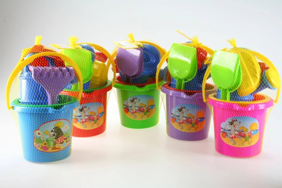 - Kyblík, sítko, lopatička, hrabičky, konvička, bábovka