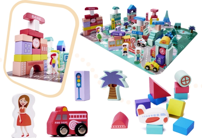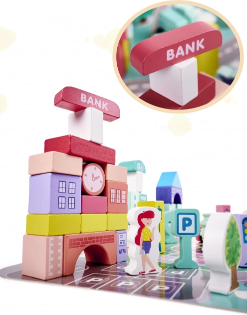 Součástí stavebnice jsou různé budovy jako banka, nemocnice, policejní stanice a pošta. Nechte děti tvořit a hrát si jako skuteční architekti.