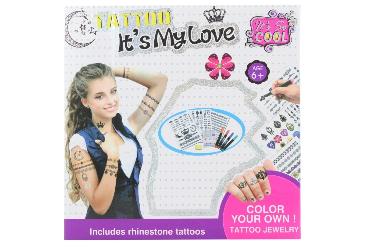 Vytvořte si vlastní dočasné body art s touto kreativní tetovací sadou pro děti od 6 let. Obsahuje až 115 designů, 6 barevných tetovacích fixů, ozdobné kamínky a houbičku pro snadnou aplikaci. Skvělé pro třpytivé tetování, zdobení rukou i paží a rozvoj fantazie a kreativity.
