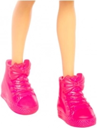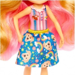 Gerika má dlouhé růžovo-blond vlasy, veselý outfit s motivy zvířátek a výrazné růžové botky pro módní vzhled.