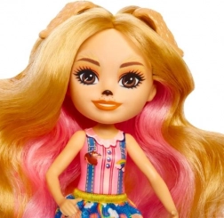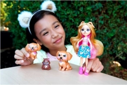 Objevte kouzelný svět ENCHANTIMALS s panenkou Gerika Golden Retriever a roztomilými mazlíčky. Set zahrnuje panenku cca 15 cm s dlouhými růžovo-blond vlasy, pohyblivými končetinami a stylovým oblečkem, a také dvě štěňátka a veverku pro nekonečné příběhy a kreativní hru.