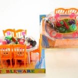 - Kompletní set: stoleček, 6 židliček, nádobíčko a jídlo.
