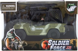 Akční hračka pro malé vojáky: tato vojenská sada přináší plastový džíp s vojákem a bohatým příslušenstvím. Ideální pro dětskou představivost a dobrodružnou hru. Kompaktní rozměry džípu cca 21 × 12 cm a balení cca 28 × 18 × 11,5 cm. Vhodné pro děti od 3 let.