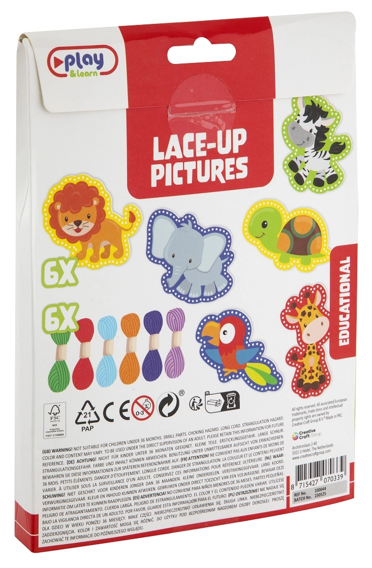 Každý z 6 pevných obrázků má předpřipravené dírky pro snadné provlékání, takže je aktivita vhodná i pro začátečníky. Součástí balení je 6 tkaniček v různých barvách – stačí vybrat obrázek, provlékat a sledovat, jak motiv ožívá.
