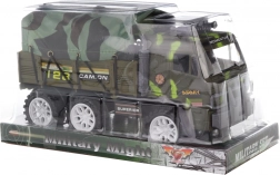 Realistické vojenské auto s plachtou o délce cca 23 cm nadchne malé milovníky techniky. Plachta je upevněna pomocí gumiček a lze ji snadno sundat. Auto se pohybuje na setrvačník pro zábavnou jízdu bez baterií. Ideální hračka pro děti od 3 let.