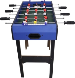 Stolní fotbálek s odolnou konstrukcí a modrým hřištěm přináší rychlou a napínavou hru kdykoli máte chuť. Stabilní dřevěné nohy a kvalitní kovové tyče s protiskluzovými rukojeťmi zaručí přesné vedení hráčů a pohodlné ovládání.