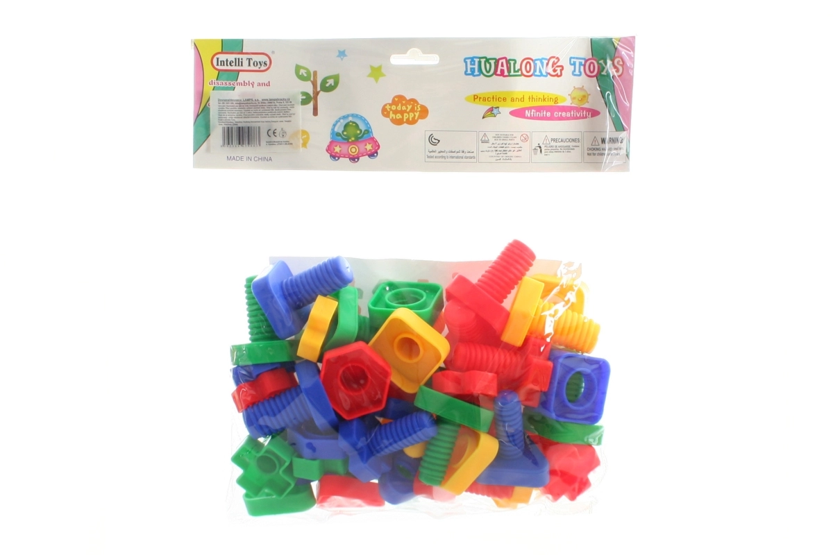Tato stavebnice je navržena speciálně pro děti a obsahuje dílky ve tvaru šroubů a matic. Je vyrobena z kvalitního plastu, který je odolný a bezpečný pro hraní. Sada podporuje rozvoj dětské kreativity a pomáhá malým dětem zlepšit jejich jemnou motoriku. Sada obsahuje: