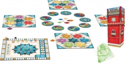 - 132 barevných dílků mozaiky, 4 desky hráčů, 1 deska počítadel, 1 žeton začínajícího hráče, 9 výloh, 1 plátěný sáček, 1 věž, 1 ukazatel kola, 4 ukazatele skóre, pravidla hry