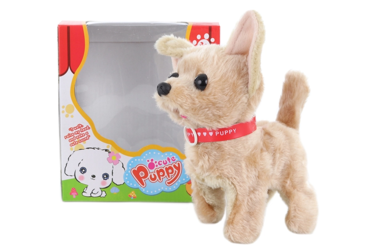 Tento plyšový chodící pejsek je ideální společník pro malé milovníky zvířátek. Po spuštění se roztomile pohybuje a vydává štěkací zvuky, čímž podporuje fantazii i interaktivní hru. Díky příjemnému materiálu a kompaktním rozměrům se snadno přenáší a uklízí.