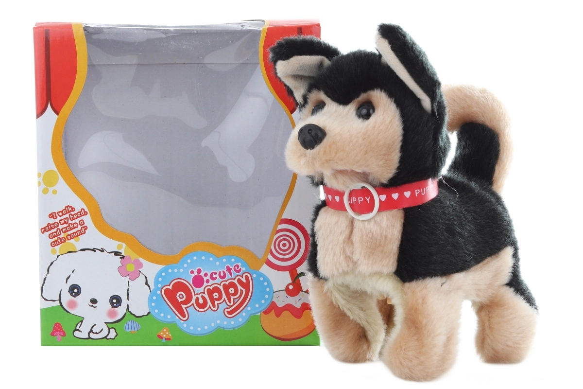 Tento plyšový chodící pejsek je skvělým společníkem pro malé milovníky zvířátek. Po zapnutí chodí a vydává zvuky štěkání, čímž napodobuje skutečného pejska a podporuje dětskou fantazii i interaktivní hru.