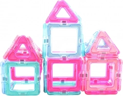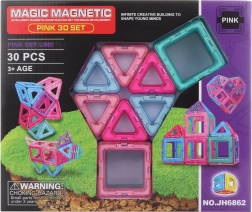 Užijte si hodiny tvořivé zábavy s touto magnetickou stavebnicí. Sada obsahuje 30 dílů, které lze snadno spojit pomocí magnetických hran. Pestrobarevné dílky v růžové, modré a tyrkysové barvě jsou průhledné a působivě vypadají při sestavování různých 3D objektů.