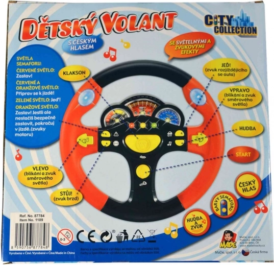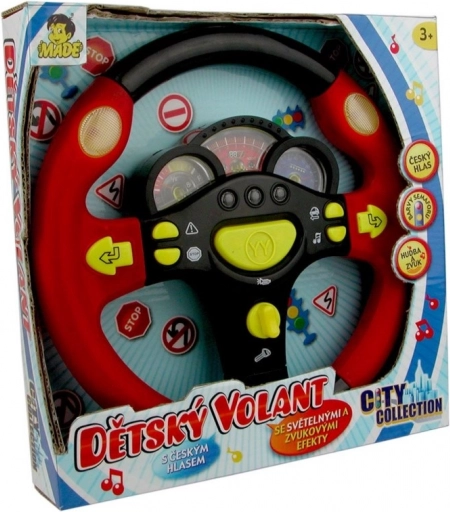 Zpříjemněte dětem dlouhé cesty autem s tímto zábavným volantem CITY COLLECTION. Nabízí české hlasové pokyny, světelné a zvukové efekty a naučí děti základům dopravních pravidel. Nechybí klakson, příkazy JEĎ, VPRAVO, VLEVO, STŮJ, hudba ani barvy semaforu. Ideální hračka pro malé šoféry od 3 let.