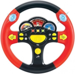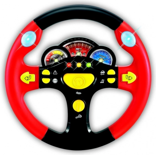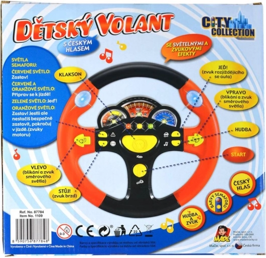 Volant nabízí pestrou paletu funkcí: od klaksonu, přes zvuk rozjíždějícího auta, směrová světla se zvukem, až po hudbu a brzdění. Robustní plastové provedení a příjemný průměr 24 cm skvěle padne dětským ručkám.