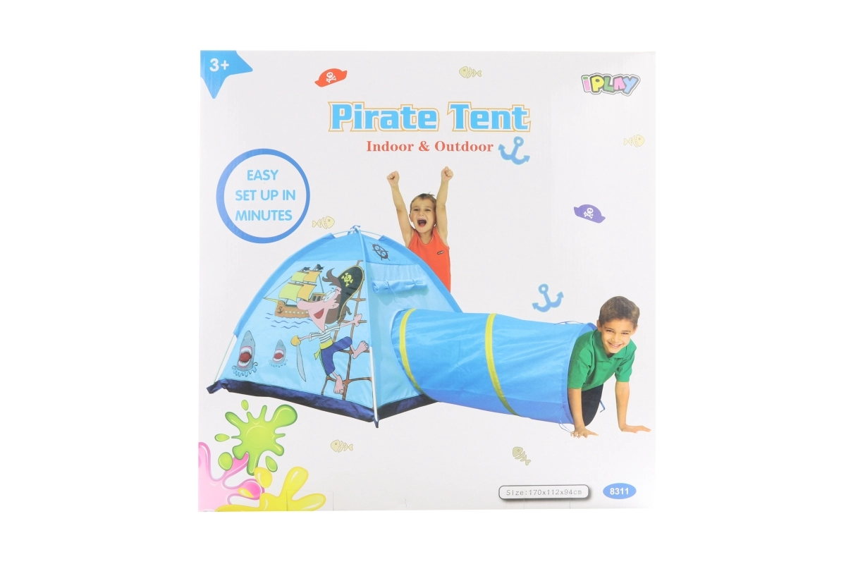 Zábavný dětský stan s pirátským motivem a připojeným tunelem přináší hodiny kreativní zábavy doma i na zahradě. Díky rozměrům cca 170 × 112 × 94 cm nabízí dostatek prostoru pro hraní a schovávání. Lehká konstrukce umožňuje snadné sestavení a přenášení, ideální pro děti od 3 let.