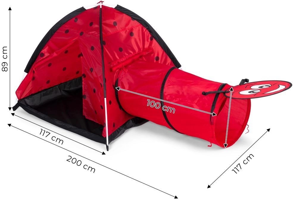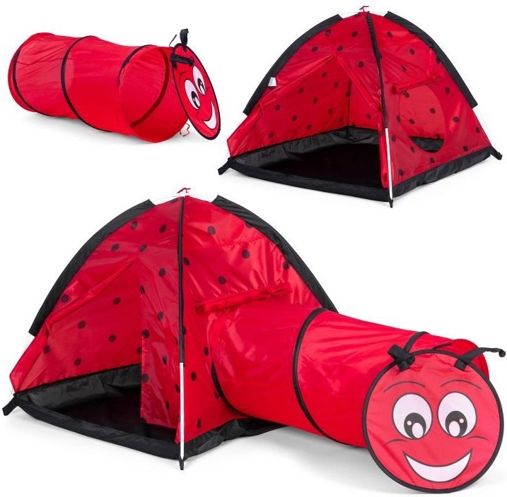 Proměňte pokoj nebo zahradu v místo plné dobrodružství. Dětský stan s motivem berušky láká děti k objevování a tvořivé hře. Iglú konstrukce s jedním vstupem a napojením pro tunel podporuje pohyb, prolézání a schovávání, což rozvíjí motoriku i fantazii. Díky lehkému rámu stan snadno přenesete, takže si ho děti užijí kdekoli.